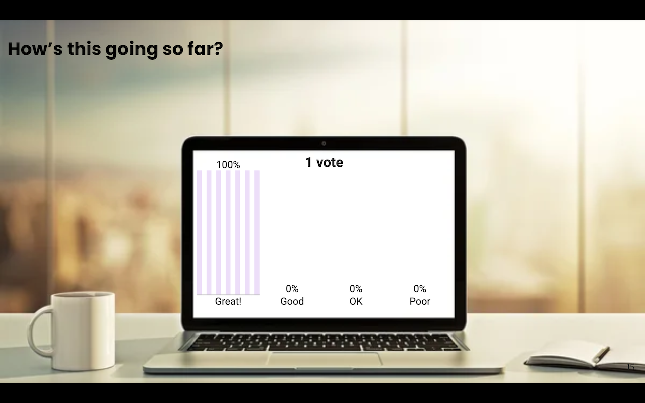 When you link your Google Slides presentation to Doppio, you can insert interactive content and audience experiences by simply typing into the speaker notes! Here is an example of how this looks: